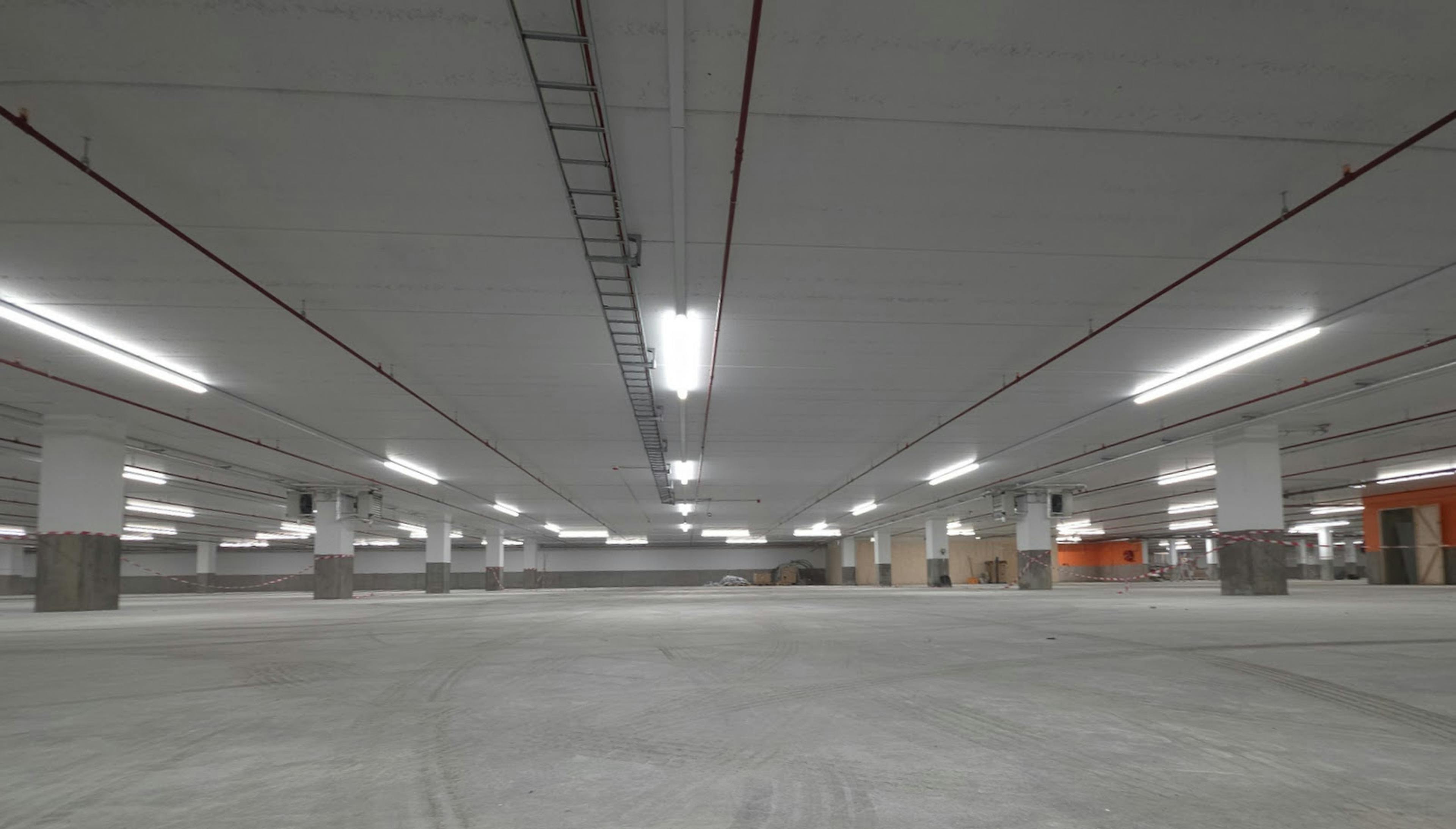 Svartar E-line brautarlýsing frá TRILUX ásamt kastaralýsingu frá oktalite